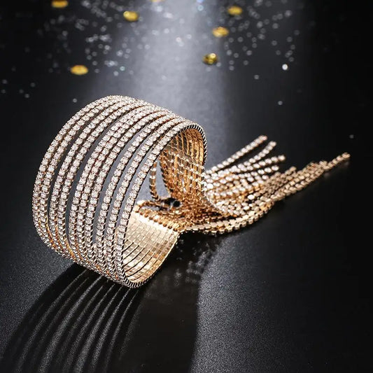 YFJEWE 10 Rows Rhinestone Bangle Bracelet Silver Plated Gold Color Metal Sparkly tassel Crystal Indian Bangles for Women B284