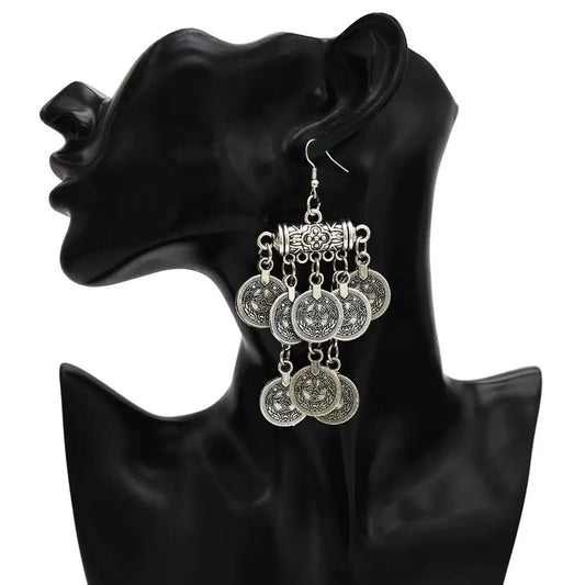Antique Sliver-Plated Hollow Alloy Geometric Dangle Indian Earrings For Women Gypsy Jewelry Boho Ethnic Leaf Bell Tassel Earring