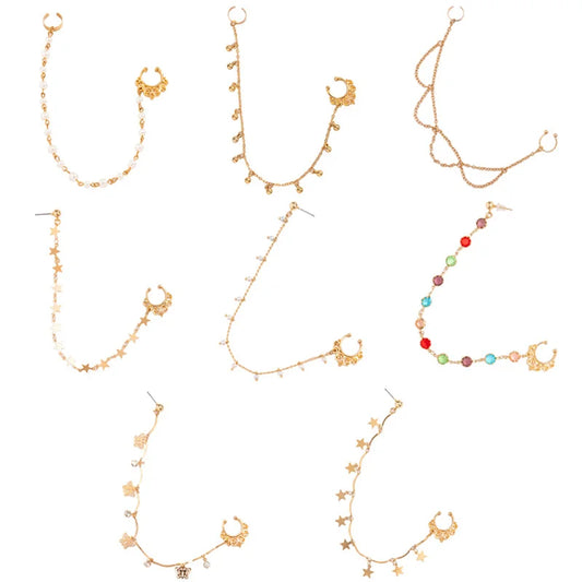 Indian Nose Chain Earrings Nose Clip Fashion European And American Personality Punk For Women Earrings Geometric Tassel Chain