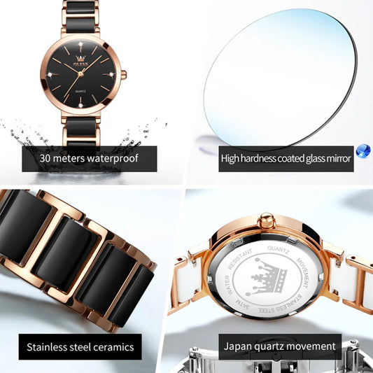 OLEVS Fashion Elegant Watch for Women Japanese Movement Ceramics Strap Luxury Ladies Bracelet Quartz Watches Gifts Reloj Mujer