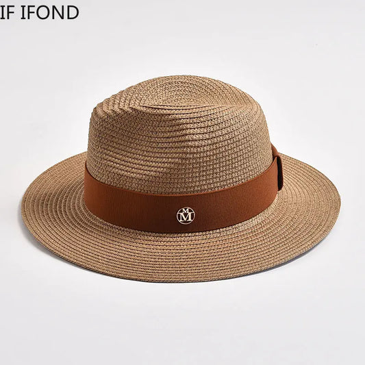 New Summer Straw Hats for Women Men Panama Travel Beach Sun Hat Ribbon Decoration Elegant Luxury Jazz Hat