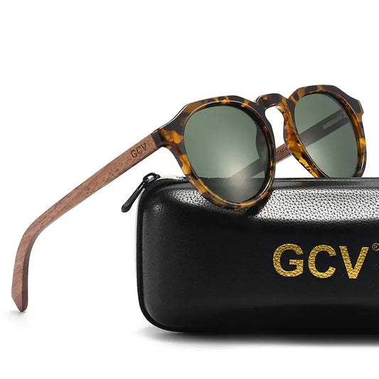 GCV Brand Advanced Walnut Wood Hawksbill Leopard Grain Frames Ultralight Sunglasses Men Women Female Polarized Delicate Fashion