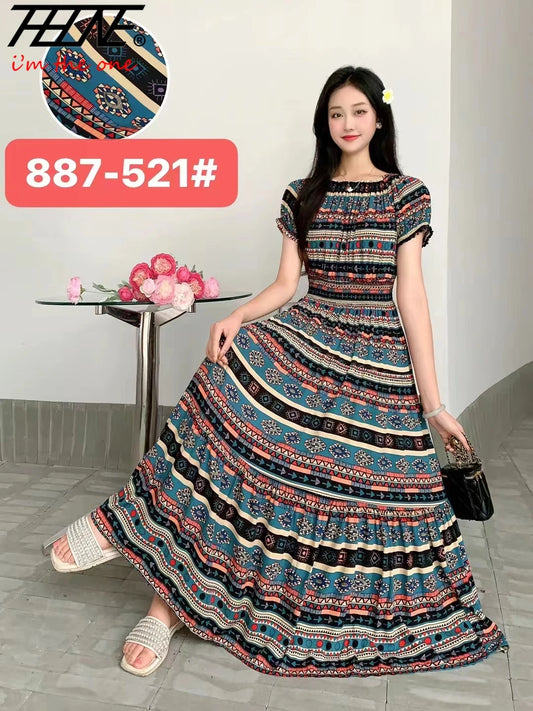 THHONE New Summer Indian Dress Women Clothes Long Maxi Vintage Korean Casual Boho Bohemian Robe Vestidos Para Mujer