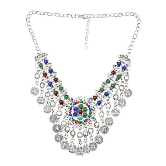 Vintage Gypsy Afghan Coin Color Bead Choker Necklace For Women Boho Ethnic Tribal Belly Dance Traditional Turkish Indian Jewelry