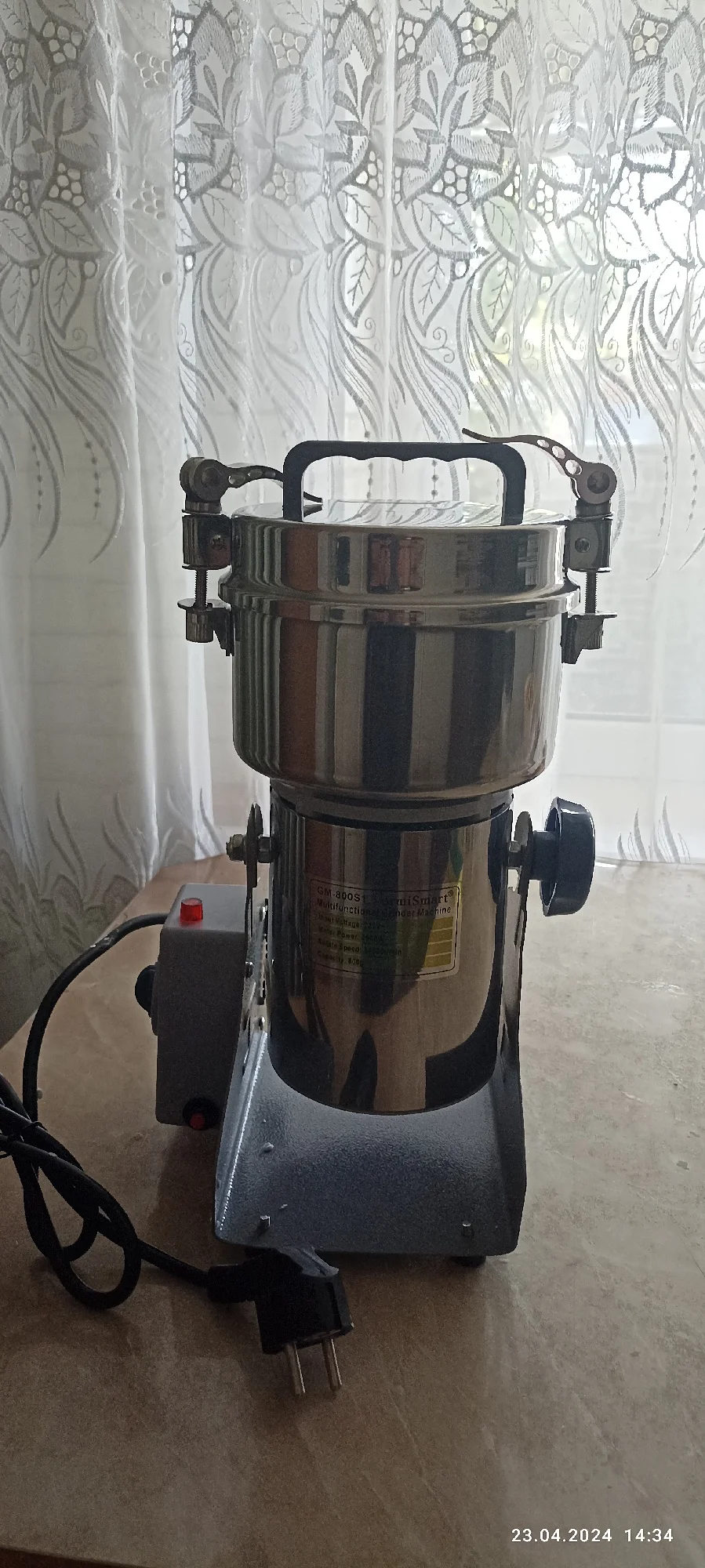 8. the quick open cover swing type high speed grinder maximum capacity of 800grams.