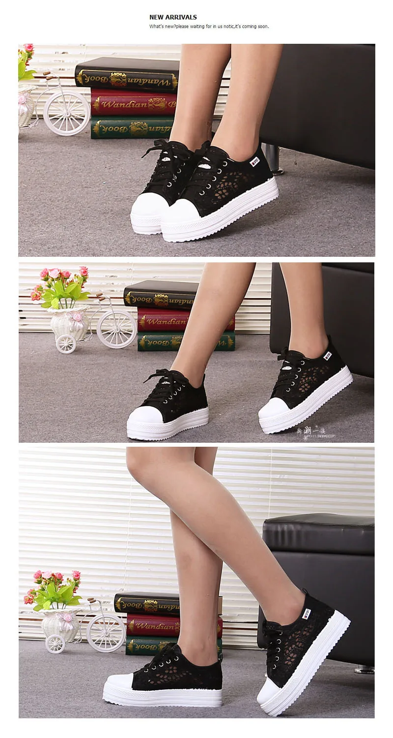 Women Shoes Fashion Summer Casual Shoes White Sneakers Cutouts Lace Canvas Hollow Breathable Platform Sneakers Tenis Feminino